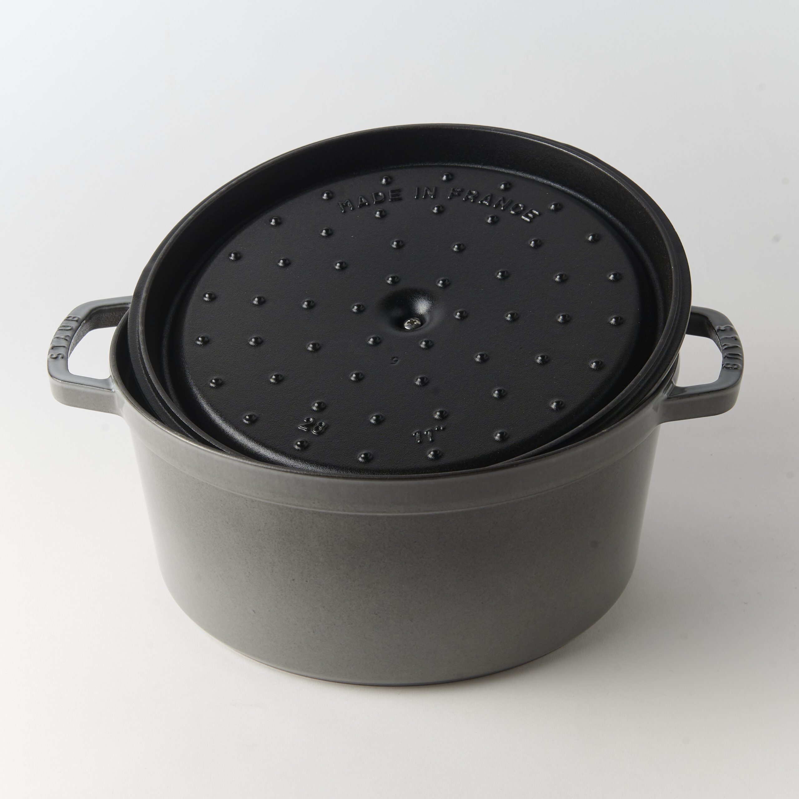 This one is made by Staub, crafted in France, from cast iron with an enamelled interior so you don’t have to season it. The Dutch oven is great for several reasons, but here are a few key ones: